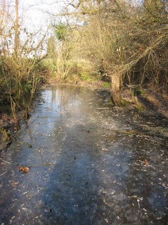 Auch unser Tümpel ist gefroren.