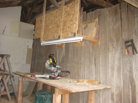 Arbeitsplatz mit Holzlager in der „Poncerie“