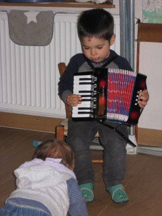 Ein Ständchen für den kleinen Bruder.