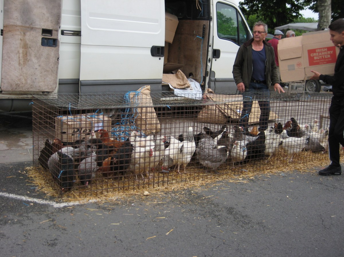 Und hier haben wir drei Hühner gekauft.