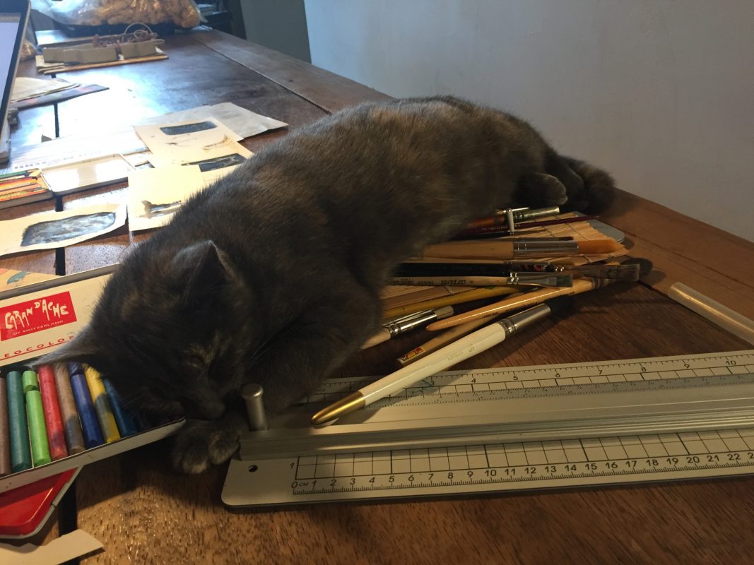 Über der gestalterischen Arbeit erschöpft eingeschlafen.