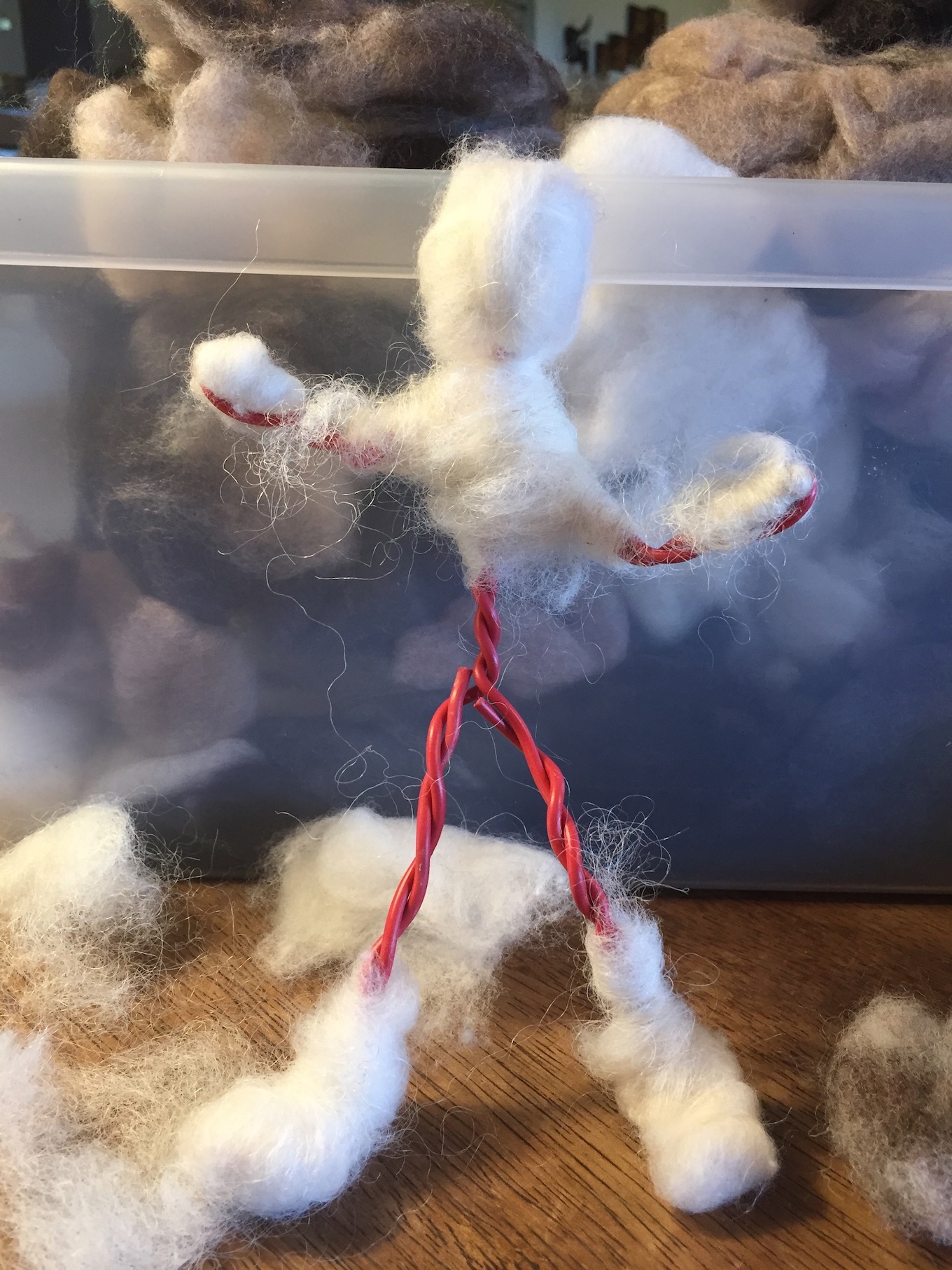 … die ich mit Wolle umwickle.
