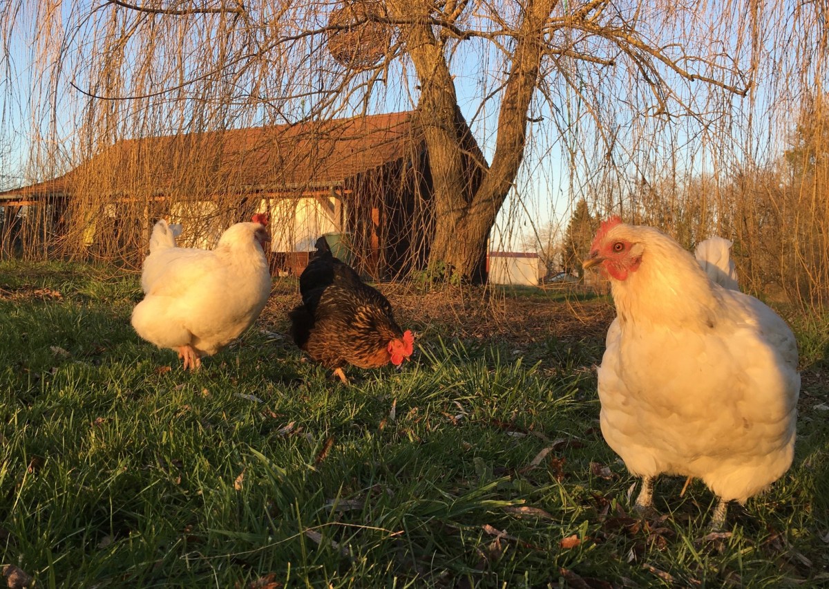 Henriette, Odette und Pipa unter der Trauerweide.